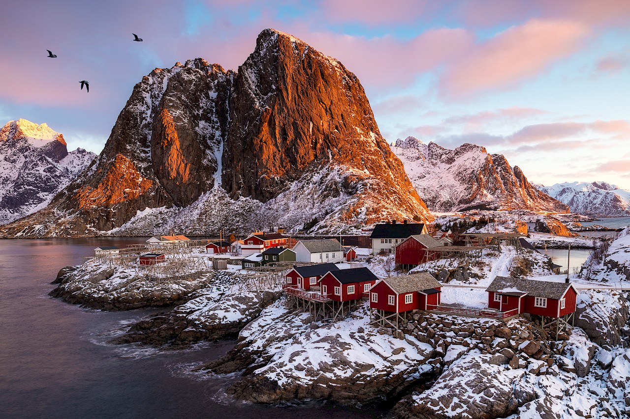 Die Lofoten - Fotoparadies auf ca. 80 Inseln im Norden Norwegens. Eine einzigartige Landschaft mit ihren malerischen Fjorden, den bunten Fischerhütten überstrahlt vom faszinierenden Nordlicht.