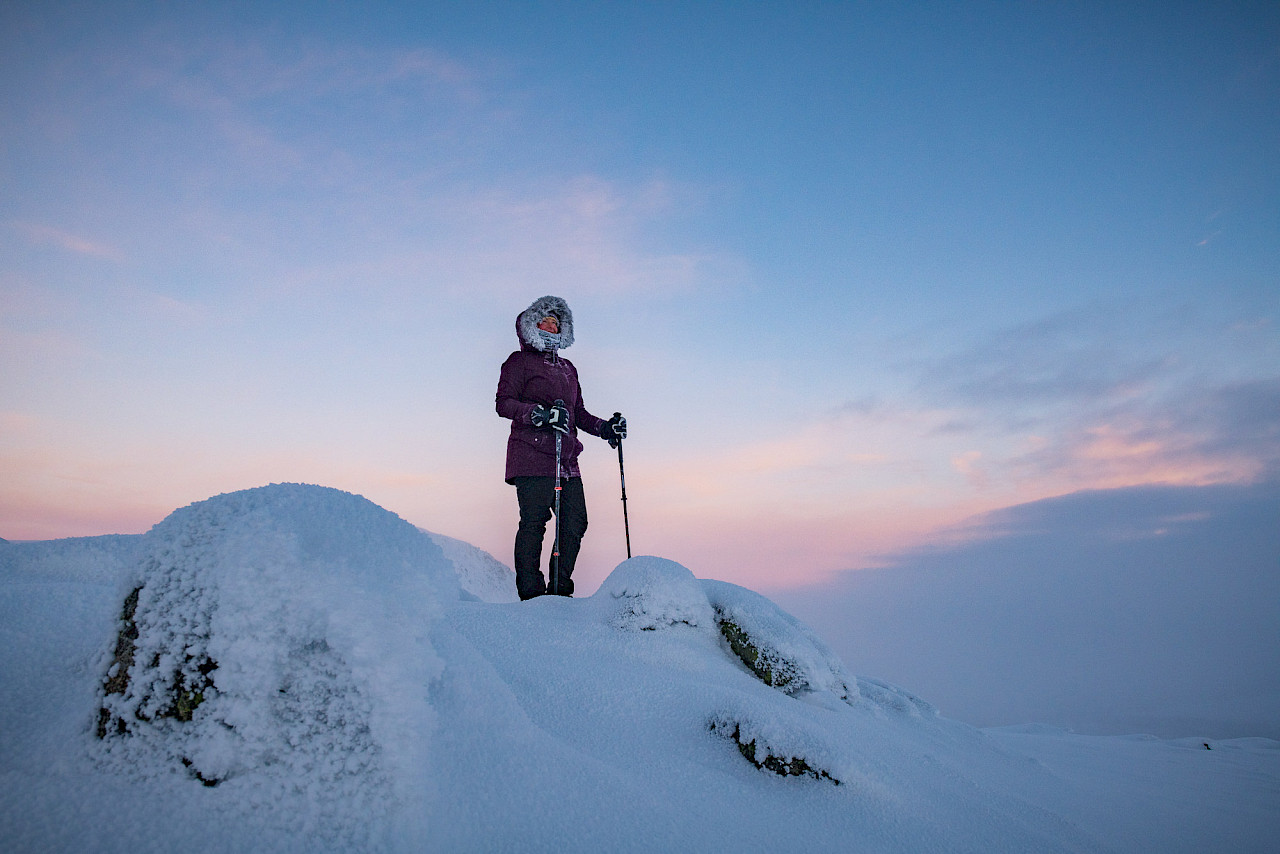 Schwerpunkt der Reise sind das Nordlicht, der Winter in Lappland und die besondere Stimmung der Polarnacht. Die Sonne wird es kaum über den Horizont schaffen, das Licht hat etwas ganz Magisches.